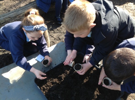 This week in Forest School, 2S planted sunflower seeds. This links to our Science learning on plants and what they need to thrive. Give them plenty of water and sunshine please!