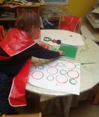 Nursery class have been designing their own wrapping paper.