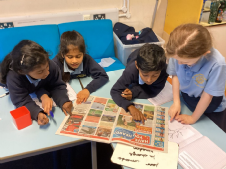 In RE, we learnt more about the kingdom of God. We looked through newspapers to find examples of where people are helping to establish the kingdom, right now here on earth! We discussed what actions we can take to follow these examples.