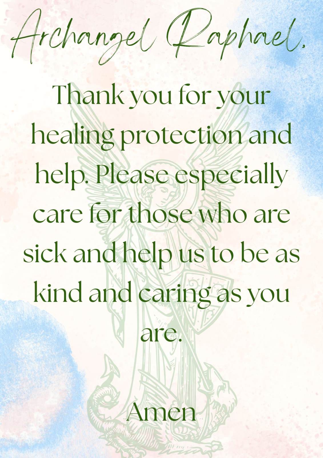 Saint Raphael is the healing angel; we ask him to take our needs for