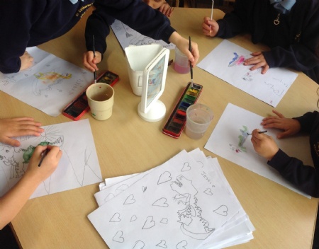 This week 1P have been experimenting with using watercolour to paint a dinosaur and its environment.