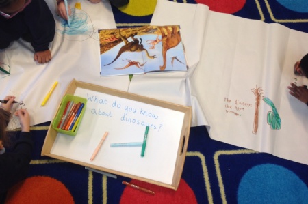 This week 1P were preparing for their new topic Dinosaurs, they wrote out what they already knew about them.