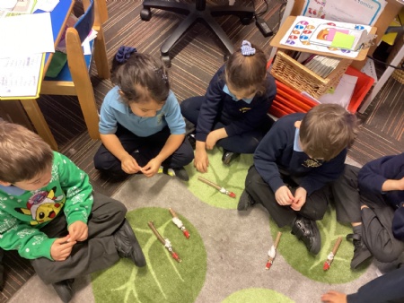 This week in Forest School, RM had a great time making Stick Man Santas using a variety of different materials.